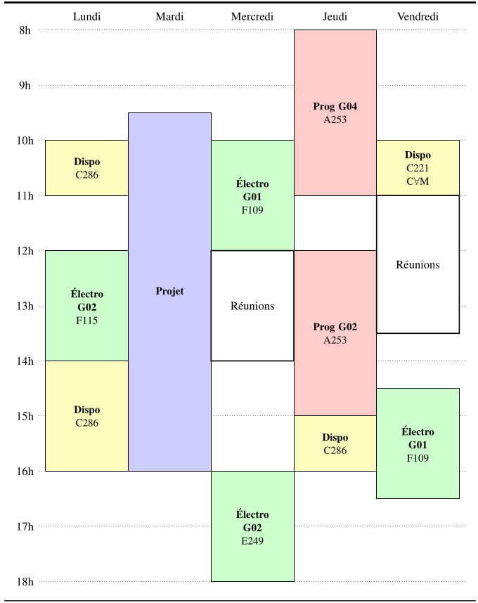Horaire d’enseignement et de disponibilité